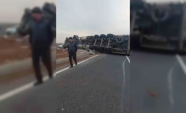 Mardin’de devrilen tırın sürücüsü yaralandı