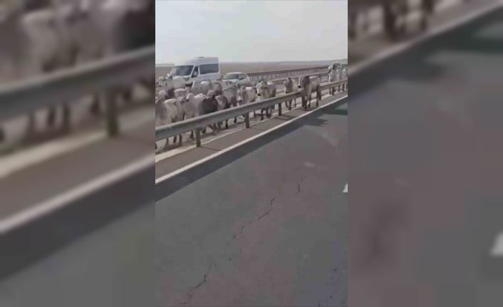 Mardin’in Nusaybin ilçesinde kaza yapan tırdaki büyükbaş hayvanlar yola çıkarken trafik olumsuz etkilendi.
