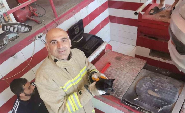Mardin’in Artuklu ilçesinde bir otomobilin motor bölümüne sıkışan yavru kedi, itfaiye ekiplerinin titiz çalışması sonucu kurtarıldı.