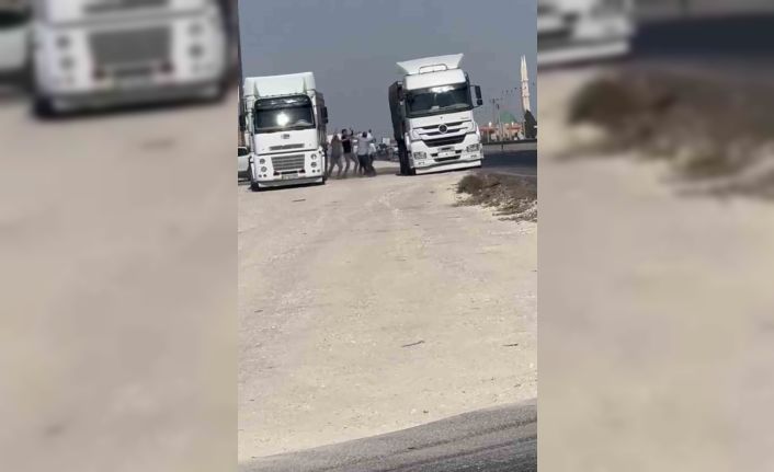 İddiaya göre, Uluslararası İpekyolu üzerindeki Akziyaret Mahallesi mevkisinde tır şoförleri arasında yol verme nedeniyle çıkan tartışma, tekme tokatlı kavgaya dönüştü. Kavga sırasında taraflardan birinin ayakkabısını çıkararak karşı tarafa vurduğu görüldü. O anlar çevredekilerin cep telefonu kamerasına yansıdı.