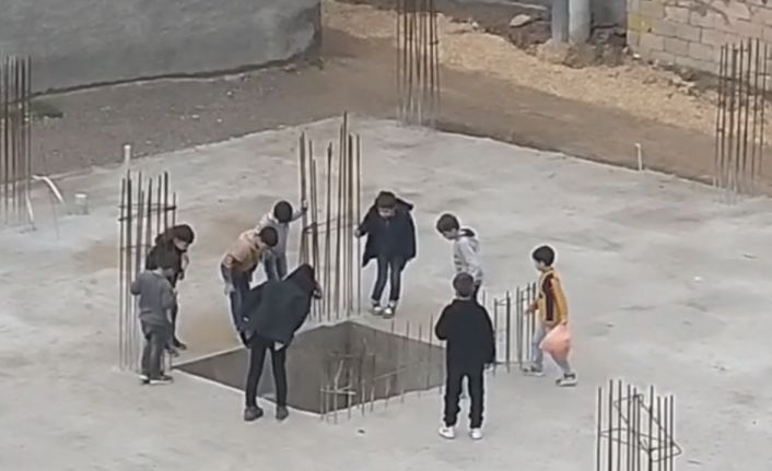Mardin’de bir inşaat alanında içi su dolu olan kuyu şeklindeki yerin etrafında oyun oynayan çocuklar, yürekleri ağızlara getirdi.