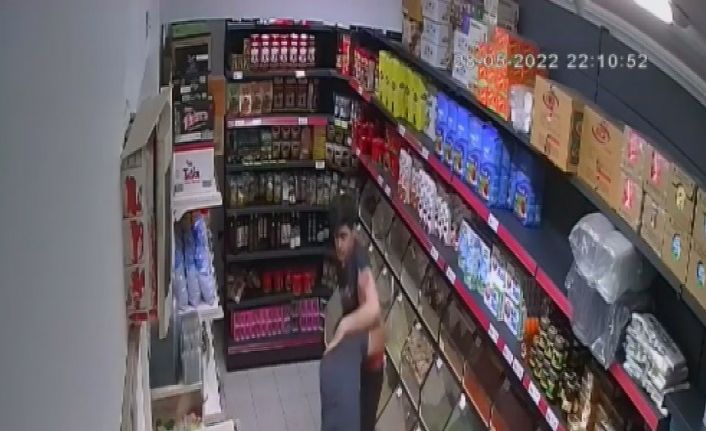 Kayseri’nin Melikgazi ilçesinde iddiaya göre market sahibinin şikayeti üzerine işten çıkarılan pazarlamacının iş yerini bastığı anlar marketin güvenlik kameralarına yansıdı.