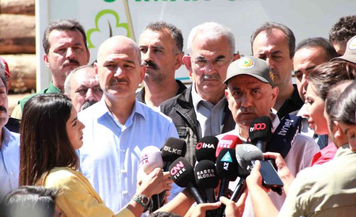 İçişleri Bakanı Süleyman Soylu, “Türkiye olarak afet bölgesiyiz. Bu afetlerle, yangınlarla, sellerle, depremlerle ve heyelanlarla sürekli olarak karşı karşıya kalacağız. Biz bunun için geçen yıl Türkiye Afet Eğitimini, bu yıl Türkiye Afet Tatbikat yılı olarak ilan ettik. Bundan çok kısa bir süre önce Orman Bakanlığımız ile Antalya, Adana, İzmir, Muğla’da Türkiye’de ilk kez yapılan eş güdümlü bir tatbikat yaptık. 2022 yılının başından itibaren geçen yıl Türkiye’de yaşadıklarımıza ilave olarak, çünkü afet konusu sürekli tedbir alınması gereken bir konu olduğu için bu konuda adım attık. Bütün kurumlarımızı bir araya getirdik ve Türkiye Afet Müdahale Planının içeresindeki orman yangınlarına müdahale planı çerçevesini güncelledik. Eşgüdüm içeresinde bütün kurumlarımızın hangi adımları atacağımızı, havanın nasıl olacağını, ormanın aktivasyonunu, lojistiği her birini tekrar değerlendirdik. Yaklaşık 5-6 aydır bu planı AGAD ile birlikte Orman Bakanlığı ve diğer tüm kurumlarımız, TSK’nin Chinook helikopterinden tutun, Jandarmanın yaklaşık 12 helikopterine kadar ilave polis helikopterlerine kadar. Burada kiralanan helikopter sayısından tüm operasyon birimlerine kadar her biri teker teker değerlendirildi. Sayın Bakan konuşmasında sürekli olarak akredite edilmiş STK’lar dide. Türkiye’de bundan 2-5 yıl önce böyle bir deyim yoktu. Tamamen hem orman yangınları konusunda, hem de depremler konusunda eğitim almış, seller konusunda eğitim almış ve bütün kurumlarımız ile eşgüdümlü bir süreci ortaya koyduk. Yangın alanına sivil vatandaşlarımızı sokmadık. Bunun bir profesyonel çalışma olduğunu, eğer bir destek olunacaksa onları arkadaşlarımız AFAD koordinasyon merkezince başka yerde değerlendirdiler. Ama bizim yangının içeresinde sağlık durumunu bilmediğimiz, eğitim alıp almadığını bilmediğimiz, sadece insani bir takım anlayışla buraya gelip yorgun olan ormancılarımıza yardım etmek isteyenler konusunda bir kararımız oldu. Bu alana sokmadık ve bundan sonra da sokmayacağız. Bizim beslenme ihtiyacımızı gideren 15 çalışma grubumuz var Türkiye Afet Müdahale planında. 15 çalışma grubumuz burada çalıştı”
