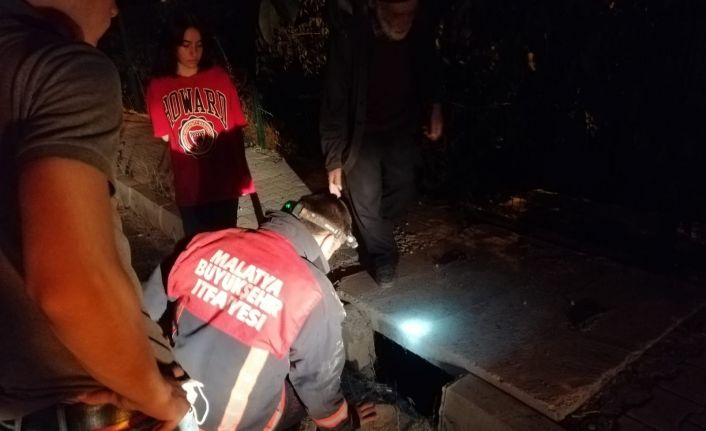 Malatya’da araçlardan kaçarken, menfeze düşen kedi itfaiye ekipleri tarafından kurtarıldı.