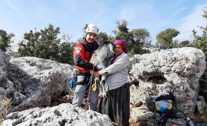 Keçilerine kavuşmanın mutluluğunu yaşayan Hatice Melekoğlu, "10 gündür 10 keçimizi kayıptı, buraya iniği mahsur kalmışlar. Sağ olsun AKUT ekibi gelerek keçilerimizi kurtardı" dedi.
