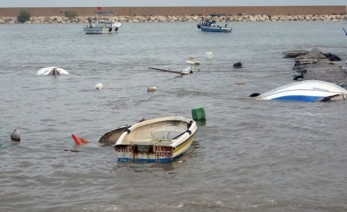 Meteoroloji Genel Müdürlüğünün fırtına ve sağanak yağış uyarısı verdiği Mersin’in Erdemli ilçesinde fırtınada balıkçı barınağındaki 5 tekne alabora oldu. Bazı tekneler balıkçılar tarafından kurtarılırken, bazılarının kurtarılması fırtına sonrasına bırakıldı. Fırtına beklentisinin devam etmesi sebebiyle balıkçılar teknelerinin başında tedbir amaçlı nöbet tutuyor.