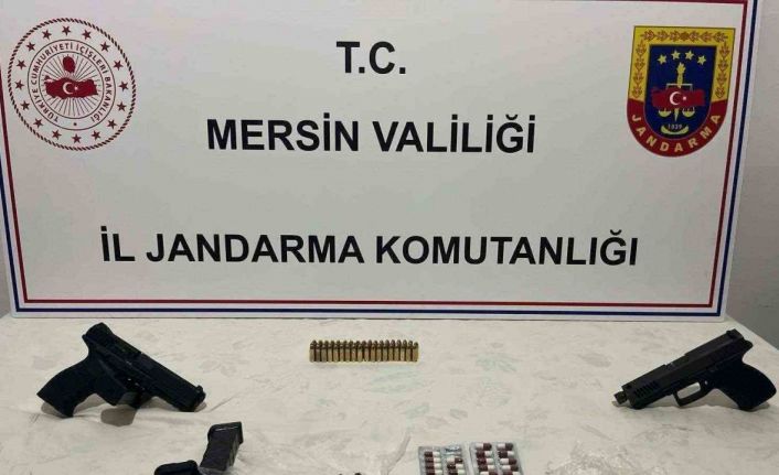 Alınan bilgiye göre, İl Jandarma Komutanlığı ekipleri, merkez Akdeniz ilçesi Yeşilova Mahallesi’nde 24 Aralık 2024 tarihinde M.A.’nın öldürülmesi, 1 kişinin de silahla yaralanması olayının şüphelilerini yakalamak için çalışma yaptı. Jandarma Suç Araştırma Timlerinin yaptığı geniş çaplı araştırmada şüphelilerin 2 kardeş olduğu tespit edildi. Şüphelilerin kimlik ve adres bilgilerinin belirlenmesinin ardından operasyon için düğmeye basıldı. Cumhuriyet Başsavcılığının talimatıyla belirlenen adrese düzenlenen operasyonda şüpheliler M.E. ile M.E. yakalandı. Evde yapılan aramada 2 adet tabanca, 3 adet şarjör, 55 adet fişek ile 54 adet sentetik uyuşturucu hap ele geçirildi.