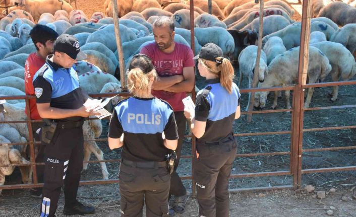 Mersin’deki hayvan pazarlarında kurbanlık satışı yapan satıcılar, sahte para, yankesicilik ve dolandırıcılık gibi suçlara karşı polis ekiplerince bilgilendiriliyor.