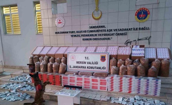 Mersin’de jandarma ekiplerinin düzenlediği operasyonda 21 bin 230 adeti dolu 208 bin 830 adet sahte bandrollü makaron ile sarma makineleri ve tütün ele geçirildi.