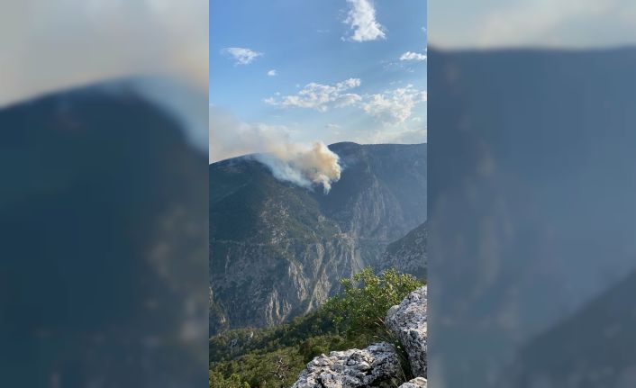 Mersin’in Tarsus ilçesinde çıkan orman yangınına havadan ve karadan müdahale devam ediyor.