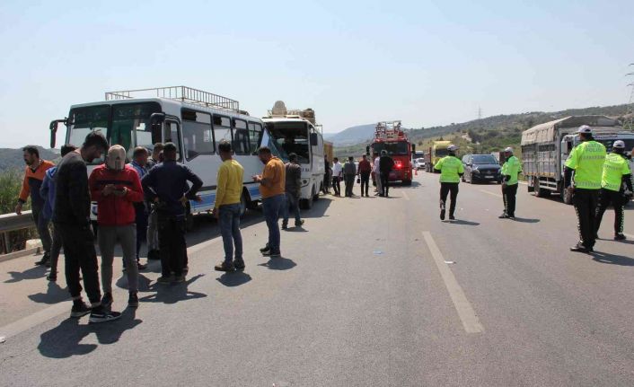 Mersin’de otobanda meydana gelen zincirleme trafik kazasında tarım işçilerini taşıyan iki servis minibüsüne resmi plakalı bir kamyon çarptı. Kazada 1’i ağır olmak üzere 7 kişi yaralandı.