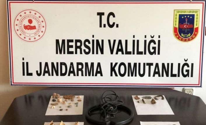 Mersin İl Jandarma Komutanlığı Kaçakçılık ve Organize Suçlarla Mücadele (KOM) Şube Müdürlüğü ekipleri, merkez Akdeniz ilçesi Çamişerif Mahallesinde 1 şahsın elinde Roma dönemine ait tarihi eserlerin olduğunu ve satmak için müşteri aradığını tespit etti. Bunun üzerine belirlenen adrese operasyon yapan jandarma, şüpheli şahsı gözaltına aldı. Evde arama yapan jandarma, 5 metal sikke, 1 metal yüzük başlığı, 2 metal mızrak ucu, 1 bakır levha, 1 bronz kanca, 5 metal obje, 1 ahşap obje, 18 oyma taş obje, 13 fosil, 1 mercek ve 1 dedektör başlığı ele geçirdi.