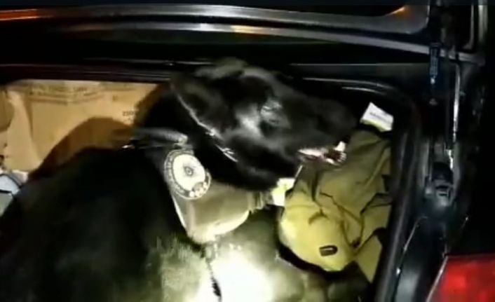 Edinilen bilgilere göre, öncü ve artçı olarak ilerledikleri tespit edilen 2 otomobili takibe alan İl Emniyet Müdürlüğü’ne bağlı Narkotik Suçlarla Mücadele Şube Müdürlüğü ekipleri araçları Kütahya karayolu üzerindeki uygulama noktasında durdurdu. Durdurulan otomobillerde Bella isimli eğitimli narkotik köpeği ile arama yapan ekipler otomobillerden birinin bagajında bulunan çantaya Bella’nın tepki verdiğini fark etti. Çantayı açan ekipler metal yiyecek kutusu içerisine konulan 117 gram kokain ile poşete sarılı 1 kilo 120 gram skunk isimli uyuşturucuyu ele geçirdi.
