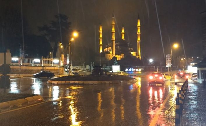 Edirne’de gece saatlerinde başlayan yağış kısa sürede kuvvetli sağanağa dönüştü.