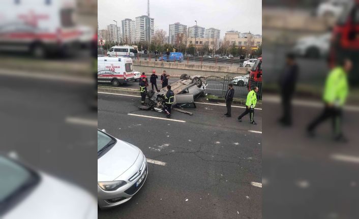 Diyarbakır’da kamyona çarpan otomobil, metrelerce takla atarak karşı şeride uçtuğu sırada refüje takıldı. Kazada 2 kişi yaralandı.