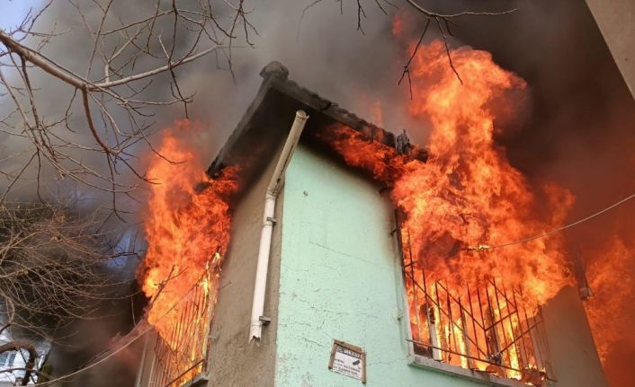 Tekirdağ’ın Çerkezköy ilçesinde henüz belirlenemeyen sebepten dolayı çıkan yangında metruk bina alev alev yandı.