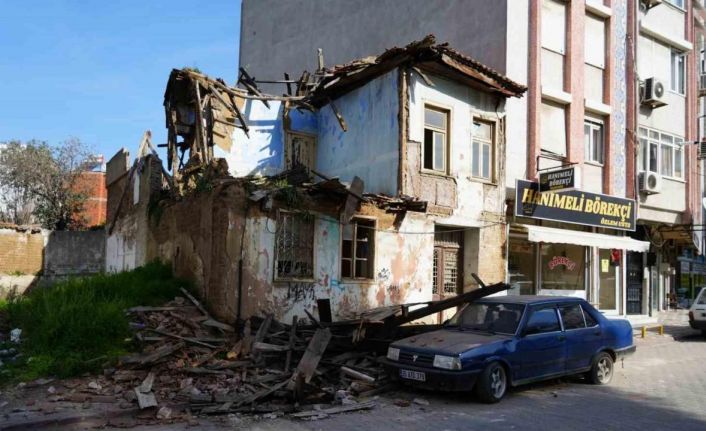 Balıkesir’in Edremit ilçesinde metruk bir bina park halindeki otomobilin üzerine çöktü.