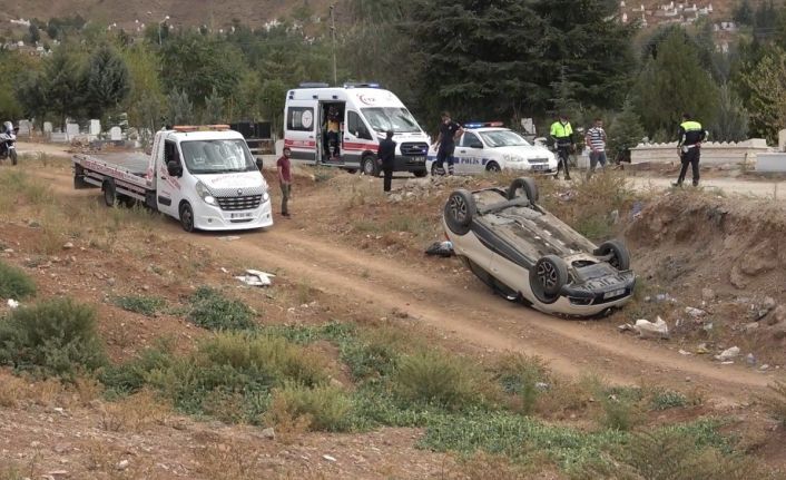 Kırıkkale’de Yahşihan Mezarlığı’na gelen baba-oğul, ziyaret sonrası bindikleri otomobil ile kaza yaptı. Ters devrilen otomobildeki baba yaralandı.