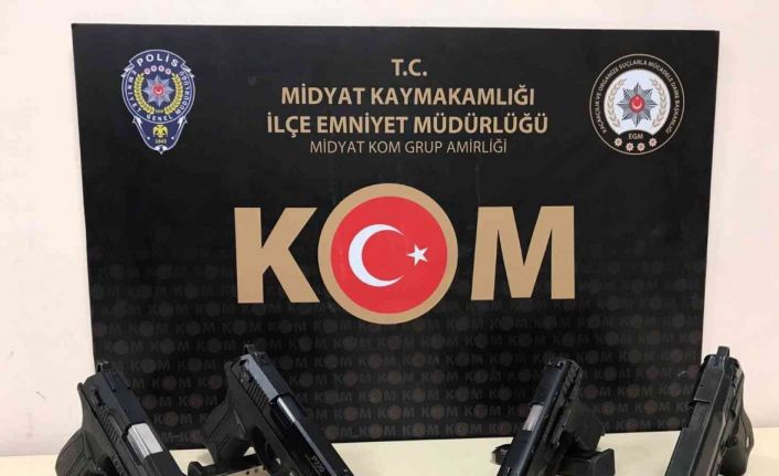 Mardin’in Midyat İlçe Emniyet Müdürlüğü Kaçakçılık ve Organize Suçlarla Mücadele Grup Amirliği ekiplerince yol kontrol uygulamasında, durumundan şüphelenilerek durdurulan araçta yapılan aramada çeşitli markalardan 4 adet ruhsatsız silah ele geçirildi.