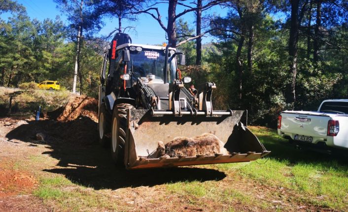 Muğla’nın Marmaris ilçesinde doğada ölü bulunan ayı, Doğa Koruma ve Milli Parklar Müdürlüğü ekipleri tarafından bulunduğu yerden kaldırıldı.