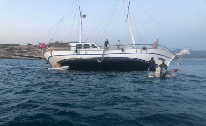 Muğla’nın Bodrum ilçesinde mavi yolculuğa çıkan tur teknesi karaya oturdu. Yan yatan teknedeki turistler ve mürettebat kurtarıldı.