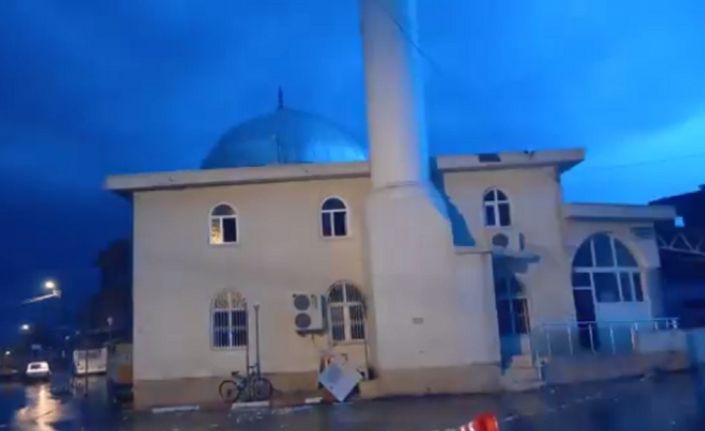 Hatay’ın Dörtyol ilçesinde bir caminin minaresine yıldırım düşmesi sonucu minarede hasara, alev alan elektrik kabloları küçük çaplı yangına neden oldu.