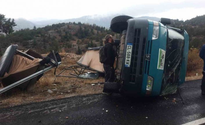 Antalya’nın Akseki ilçesinde karavan amaçlı kullanılan minibüsün devrilmesi sonucu meydana gelen trafik kazasında yabancı uyruklu sürücü yaralandı.
