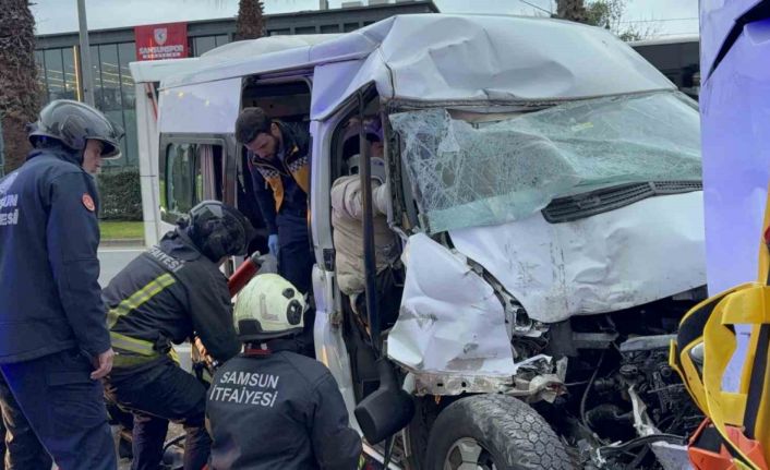 Samsun’da kontrolden çıkan minibüsün hafif ticari araca ve yolcu almak için duran belediye otobüsüne çarpması sonucu meydana gelen kazada 7 kişi yaralandı.