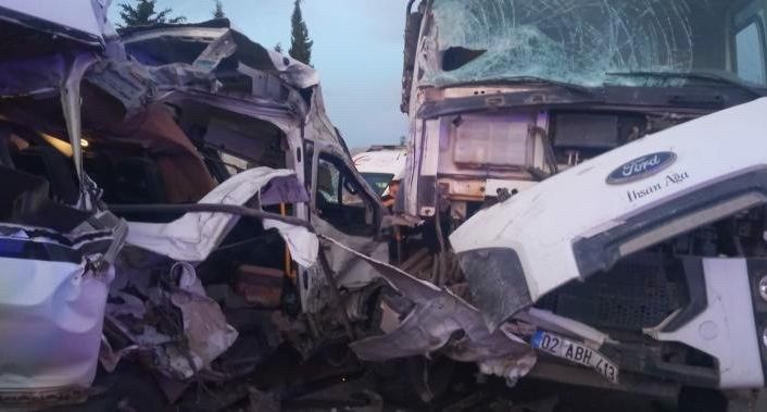 Adıyaman’da, minibüs ile kamyonun çarpışması sonucu meydana gelen kazada 1 kişi hayatını kaybederken, 4 kişi yaralandı.