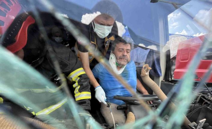 Düzce D-100 karayolu üzerinde minibüs tıra arkadan çarptı. Sürücü mahallinde sıkışan sürücü uzun uğraşların ardından kurtarıldı.