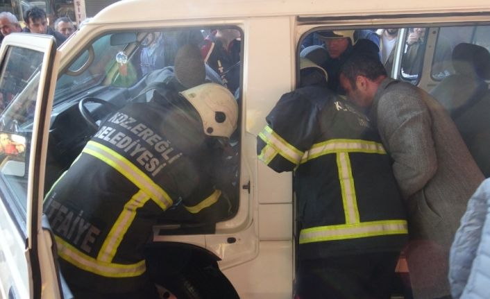 Edinilen bilgiye göre, ilçe merkezindeki pazaryerinde akşam saatlerinde Aydın C.’ye ait 67 SE 448 plakalı minibüsten dumanlar çıkmaya başlayınca vatandaşlar durumu itfaiye ekiplerine haber verdi. Yangının büyümemesi için minibüsün camlarını kırarak müdahalede bulunan vatandaşlar söndürmeyi başardı. Kısa sürede olay yerine gelen Kdz. Ereğli Belediyesi İtfaiye Müdürlüğü ekipleri minibüsün akü kablolarını sökerek elektriği kesti. Yangının elektrik aksamından çıktığı belirtilirken, minibüste maddi hasar meydana geldi.
