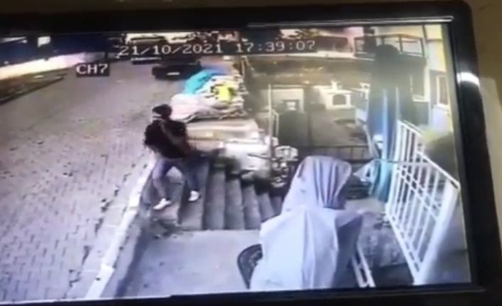 Aydın’ın Söke ilçesinde kontrolden çıkan minibüs park halindeki otomobile çarparak istinat duvarında asılı kaldı. Bu sırada merdivenden yukarıya çıkan bir vatandaş minibüsü son anda fark ederek saniyelerle kurtuldu. O anlar güvenlik kamerası tarafından anbean kaydedildi.