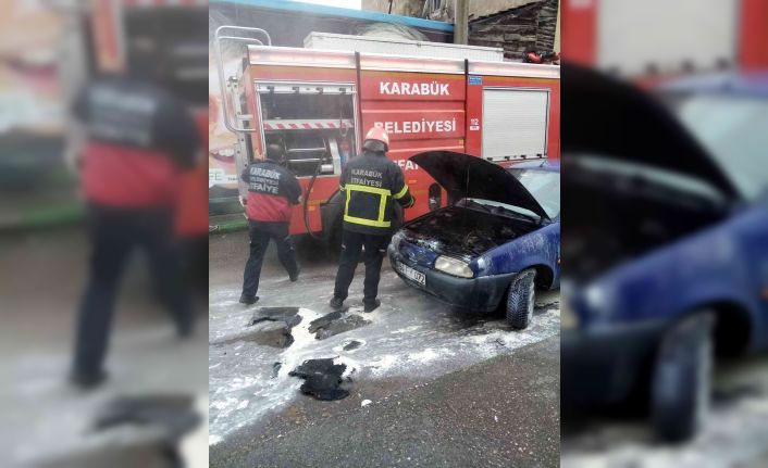 Karabük’te sürücüsünün çalıştırdığı otomobilin motor kısmı alev aldı. Yangın büyümeden itfaiye ekiplerince söndürüldü.
