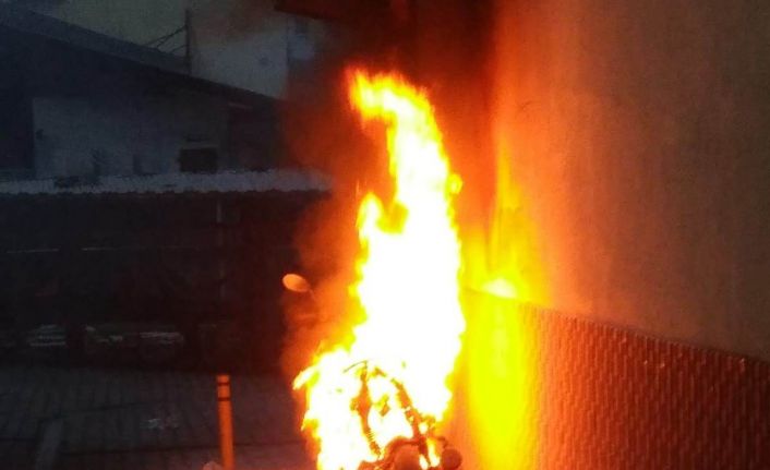 Zonguldak’ın Ereğli ilçesinde park halindeki motosiklet bir anda alev aldı. Kısa sürede yanındaki binaya da sıçrayan yangın büyük paniğe yol açtı.