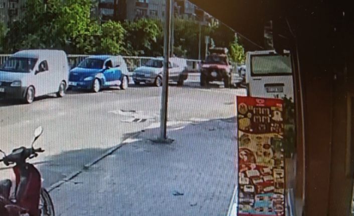 Öte yandan kaza anı bir iş yerinin güvenlik kamerasına yansıdı. Cadde üzerinde ilerleyen cipin, sokağa girmek isterken aynı istikamette gelen motosiklet sürücüsünün kayarak cipin altına girdiği görülüyor.