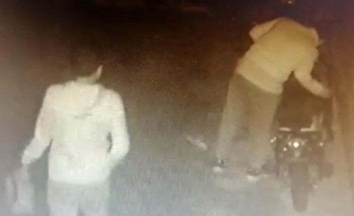 Güvenlik kameralarına anbean yansıyan hırsızlık olayında, iki kişinin motosikletin yanına geldiği görülüyor. Şüphelilerden biri cep telefonunun fenerini yakarak bir süre motosikletle uğraşıyor. Ardından ikinci şahıs gelerek cep telefonunun feneriyle ışık tutarken, diğer şahıs motosikletle uğraşmaya devam ediyor. Dakikalarca motosikleti çalmak için uğraşan iki şüpheli, yoldan geçen bir kişi olduğunu fark ederek kendi aralarında sohbet etmeye başlıyor. Yanlarından geçen kişi uzaklaştığı anda tekrar motosikletle yönelen şüpheliler, daha sonra motosikleti iterek götürüyor. Hırsızlık anında şüphelilerin rahat tavırları ise pes dedirtti.