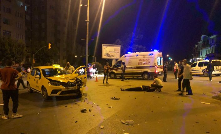 Eskişehir’de ticari taksi ve motosikletin karıştığı kazada 1’i ağır 2 kişi yaralandı.
