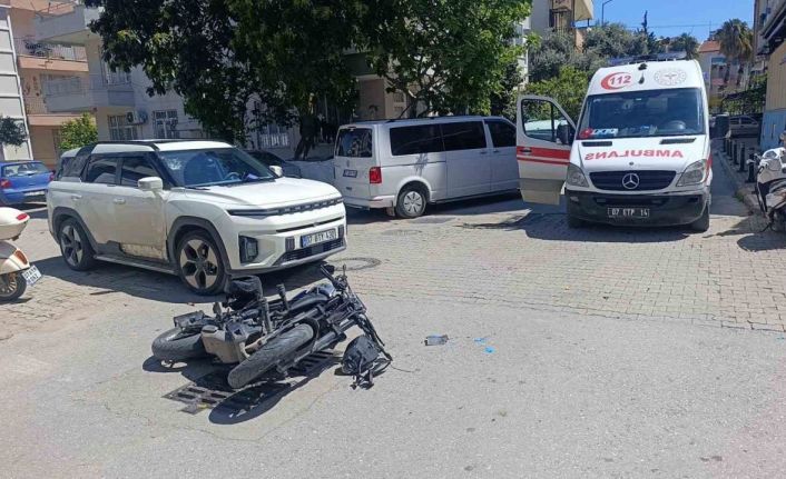 Antalya’nın Manavgat ilçesinde motosikletin otomobile yandan çarpması sonucu meydana gelen kazada motosiklet sürücüsü yaralandı. Kaza anları güvenlik kamerasına yansıdı.