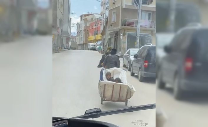 Olay, merkez Osmangazi ilçesi Emek Mahallesi’nde meydana geldi. Edinilen bilgiye göre, baba ve anne motosiklete bağladıkları çekçek arabasının içine kendi çocuklarını koydu. Gidecekleri yere kadar çocuklarını çekçek arabasının içinde götüren çift korku dolu anlar yaşattı. İzleyenleri endişelendiren görüntüler kameraya yansıdı.