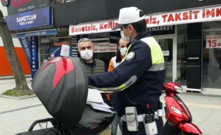 Sakarya’da sokağa çıkma kısıtlaması kapsamında polis ekiplerince denetimler sürdürülüyor. Şehir merkezi başta olmak üzere farklı bölgelerde denetim gerçekleştiren ekipler, araçları tek tek durdurarak HES kodu ve GBT sorgulaması gerçekleştirdi. Yapılan kontrollerde izin belgeleri olmayan vatandaşlara ise cezai işlem uygulandı. Atatürk Bulvarı üzerinde denetimlerini devam ettiren polis ekipleri, yaya yolundan motosikleti ile kasksız şekilde ilerlemekte olan sürücüyü durdurdu. Yapılan kontrollerde sürücünün, ehliyetinin olmadığı ve izinsiz sokağa çıktığı tespit edildi. Ekipler; plakasız motosiklet ile ehliyetsiz ve kasksız şekilde sokağa çıkma izni olmadan trafiğe çıkan ve yaya kaldırımında motosikleti ile ilerlemekte olan sürücüye 5 ayrı cezai işlem uyguladı.