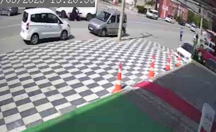 Bolu’da motosiklet ile ticari aracın çarpışması neticesinde meydana gelen kaza bir iş yerinin güvenlik kamerası tarafından saniye saniye kaydedildi.