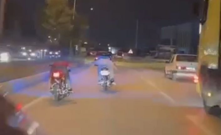 Bursa’nın İnegöl ilçesinde motosikletli gençlerin tehlikeli yarışı kameraya saniye saniye yansıdı.