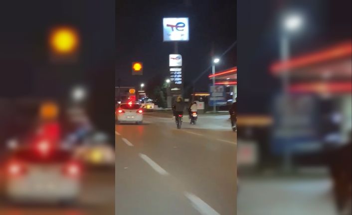 Bursa’da motosikletli gençlerin trafikteki tehlikeli hareketleri kameraya yansıdı.