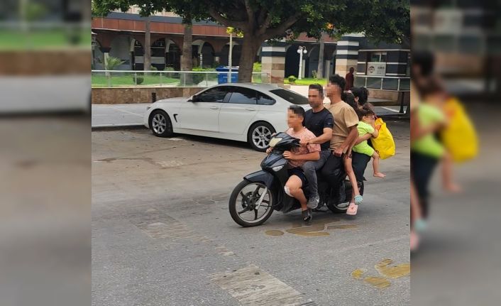 Adana’da iki kişilik motosiklette 2’si çocuk 6 kişinin kask takmadan yolculuk yapması görenleri şaşırttı.