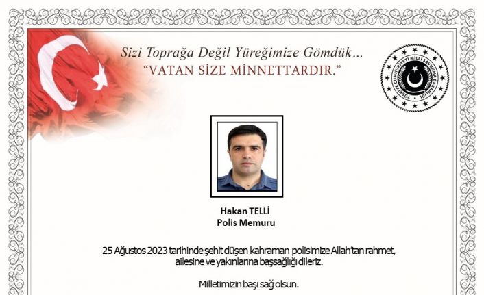 Milli Savunma Bakanlığı (MSB), şehit polis memuru Hakan Telli için başsağlığı mesajı yayınladı.