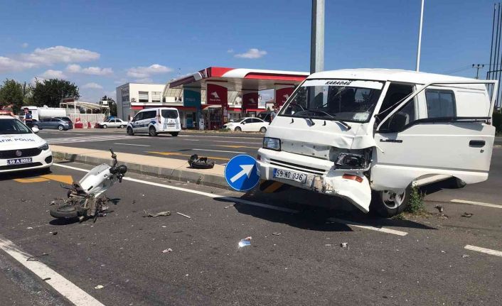 Tekirdağ’ın Muratlı ilçesinde panelvan tipi hafif ticari araçla motosikletin çarpıştığı kazada 1 kişi ağır yaralandı.