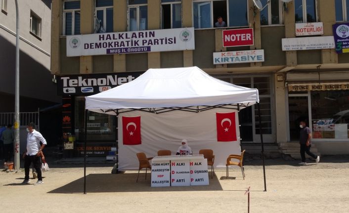 Muş’ta çocuğunun terör örgütü PKK tarafından dağa kaçırılmasından HDP’yi sorumlu tutan annenin parti binası önündeki eylemi sürüyor.