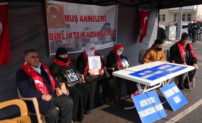 Muş’ta çocuklarının terör örgütü PKK tarafından dağa kaçırılmasından HDP’yi sorumlu tutan ailelerin oturma eylemi dondurucu soğukta da devam ediyor.