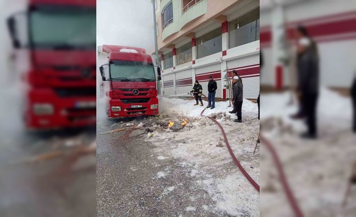 Muş’ta park halindeki bir tırın motor kısmında çıkan yangın, itfaiye ekiplerinin zamanında müdahalesiyle dorsesine sıçramadan söndürüldü.