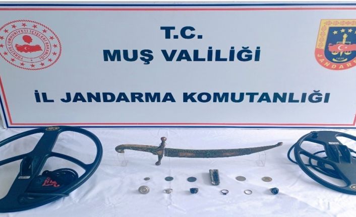 Muş İl Jandarma Komutanlığı Kaçakçılık ve Organize Suçlarla Mücadele (KOM) ile İstihbarat Şube Müdürlüklerince yürütülen istihbari çalışmalar sonucu, merkez ilçede ikamet eden Ü.T. isimli şahsın elinde bulunan tarihi eserleri satmak amacıyla müşteri aradığı bilgisine ulaşıldı. Elde edilen bilgiler doğrultusunda Muş Sulh Ceza Hakimliğinden alınan arama kararına istinaden şüphelinin ikametinde arama yapıldı. Aramada, Müze Müdürlüğü tarafından Osmanlı dönemine ait olduğu değerlendirilen 1 hançer/kama, 5 sikke, 6 yüzük ve 1 taş obje ele geçirildi. Ayrıca kaçak kazılarda kullanıldığı değerlendirilen 2 metal dedektör başlığına da el konuldu. Ele geçirilen tarihi eserlere muhafaza altına alınmak üzere el konulurken, Muş Cumhuriyet Savcısının talimatıyla olayla ilgili adli tahkikat başlatıldı. Şüpheli şahıs, ifadesinin alınmasının ardından serbest bırakıldı.